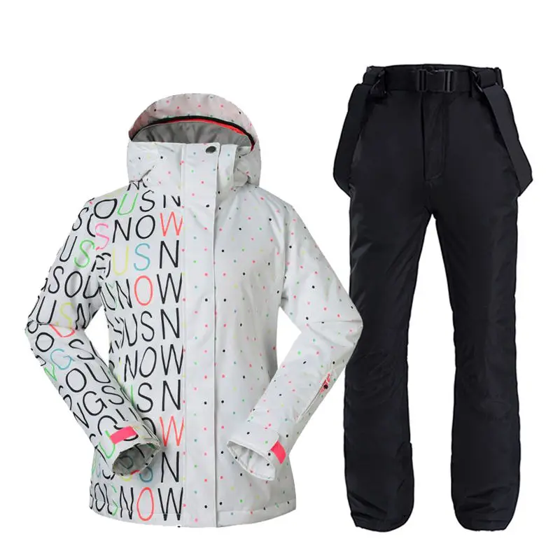 Get Discount : 39% white Women's Snow Suit outdoor Sports Wear Snowboarding clothing Sets waterproof windproof Costume